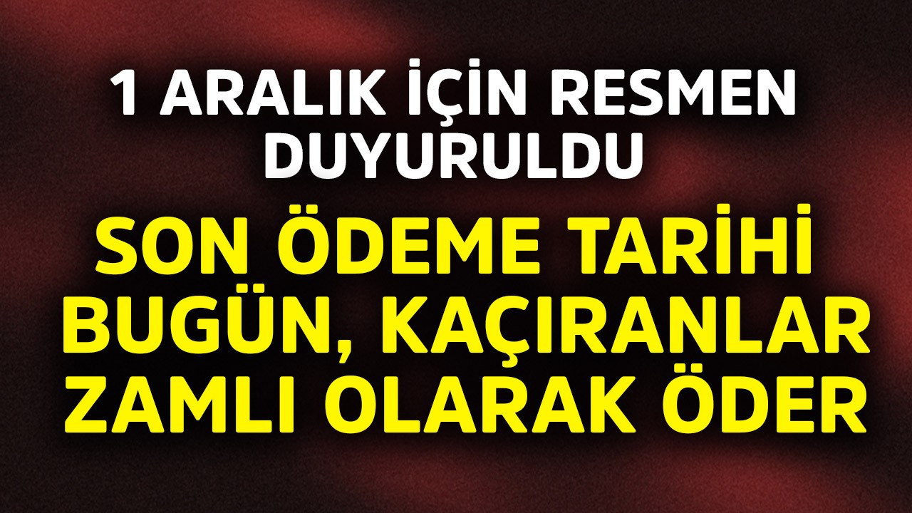 1 Aralık'ta ödemelerin son günü. Bunu kaçıran vatandaşlar zamlı rakam üzerinden ödeme yapmak zorunda kalacak.