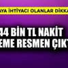 44 BİN TL NAKİT ÖDEME RESMEN ÇIKTI