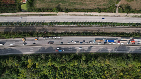 Anadolu Otoyolu Sakarya geçişinde kontrolden çıkan kamyonet yan yattı. Otoyolun İstanbul istikametinde uzun araç kuyrukları oluşurken, olay yeri havadan görüntülendi.