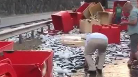 Dorse kapağı açılan tırdaki tonlarca balık yola saçıldı