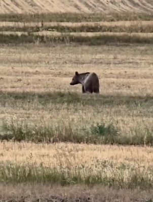 Ardahan’da tarlalara inen bir boz ayı yiyecek ararken görüntülendi. İnsanları fark eden ayı hızla kaçarak bölgeden uzaklaştı.