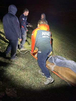 Merada otlarken uçuruma yuvarlanan hayvan için AFAD ekipleri seferber oldu. 12 saat süren zorlu çalışmanın ardından sahibine teslim edildi.