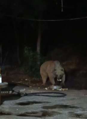 Bingöl'de şantiye alanına inen bir ayı, işçilerin çevreye tepsiyle bıraktığı yiyecekleri yiyerek karnını doyurdu. Daha sonra ormanlık alana yönelerek gözden kaybolan ayı, ardında boş bir tepsi bıraktı. O anlar cep telefonu kamerasına yansıdı.