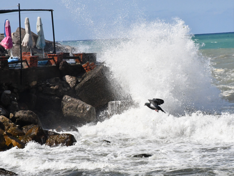 Kuvvetli rüzgarla yükselen dalgalar dalgakıranları aştı, can güvenliği için denize girmek yasaklandı