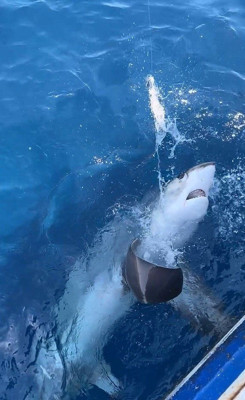 Çanakkale açıklarında kılıç balığı avına çıkan İlker Özdemir’in oltasına, yaklaşık 6 metre boyunda bir sapan köpek balığı takıldı. Özdemir ve arkadaşları, görüntüledikleri balığı daha sonra tekrar denize bıraktı.