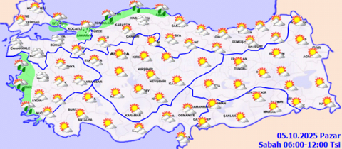 Meteoroloji Genel Müdürlüğü tarafından yapılan tahminlere göre: Ülkemizin kuzey ve batı kesimlerinin parçalı, yer yer çok bulutlu, Kıyı Ege, İstanbul, Sakarya, Bursa, Zonguldak, Bartın, Sinop, Samsun ve Rize çevreleri, Ordu'nun, Giresun'un ve Trabzon'un iç kesimleri ile Kastamonu'nun ve Artvin'in kıyı kesimlerinin yağmur ve sağanak yağışlı, diğer yerlerin az bulutlu ve açık geçeceği tahmin ediliyor.
