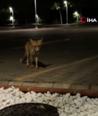Karabük Üniversitesinde görev yapan güvenlik personeli Rıza Meriç, kampüse gelen tilkiyi poğaça ile besledi. Temkinli adımlarla yaklaşan tilki, uzatılan yiyeceği aldıktan sonra gecenin karanlığında gözden kayboldu.