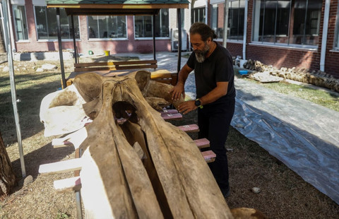 Mersin'de 2021'de bilimsel çalışmalarda kullanılması için üniversite bahçesine gömülen 14 metrelik Fin balinasının topraktan arındırılan iskeleti, onarım ve birleştirme işlemlerinin ardından gelecek yıl Deniz Canlıları Müzesi'nin ziyaretçileriyle buluşturulacak.