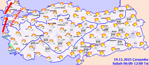 Meteoroloji 19 Kasım Çarşamba günü için hava tahmin raporunu paylaştı. Buna göre, yağışlar Kıyı Ege ve Trakya’nın bazı bölümlerinde etkili olacak. Rüzgarın Marmara'nın batısında güney ve güneybatı yönlerden kuvvetli olarak esmesi bekleniyor. Raporda ayrıca, 'Rüzgarın, Marmara'nın batısında güney ve güneybatı yönlerden kuvvetli olarak esmesi beklendiğinden yaşanabilecek olumsuzluklara karşı dikkatli ve tedbirli olunmalıdır' uyarısı yapıldı.