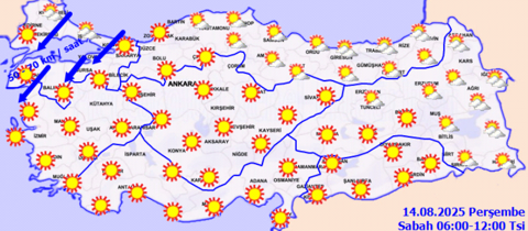 Meteoroloji Genel Müdürlüğü tarafından yapılan tahminlere göre: Ülkemizin kuzey ve doğu kesimlerinin parçalı yer yer çok bulutlu, diğer yerlerin az bulutlu ve açık geçeceği tahmin ediliyor. Rüzgarın; Marmara ile Kuzey Ege kıyılarında kuzey ve kuzeydoğu yönlerden kuvvetli ve kısa süreli fırtına (40-70 km/saat) şeklinde esmesi bekleniyor.