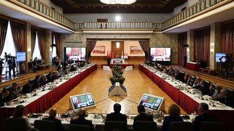"Türkiye'de farklı işçi ve memur kesimlerimizi temsil eden sendikalarımızın ana gövdesi burada. Bütün sendikalarımızın başkanlarının sözlerinin özeti, 'Biz bu sürece destek veriyoruz ve bu sürecin bir an evvel esenlik içerisinde, barış içerisinde tamamlanması için gayret gösterilmesinden yanayız.' Buradaki tekliflerinizin hepsi kayıt altına alındı. Sizden bir beklentimiz var, bu niyeti ortaya koyduğunuz için rahatlıkla söylüyorum, burada dile getirdiğiniz görüşleri hem kendi tabanınızla ve toplumun farklı kesimleriyle de bu sürecin daha iyi anlaşılması ve bir toplumsal rıza mekanizmasının çoğaltılması, güçlendirilmesi için paylaşmanızı istirham ediyoruz"