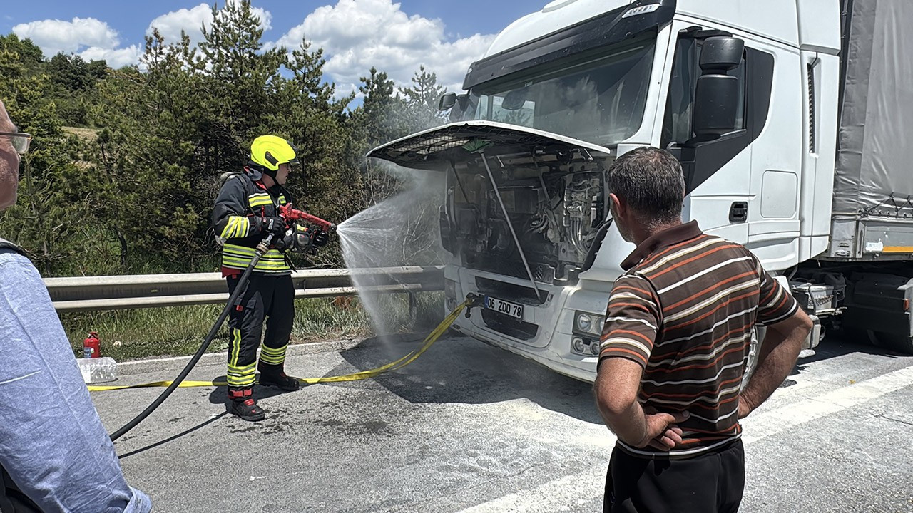 Anadolu Otoyolu'nun Bolu kesiminde seyir halindeki tırda çıkan yangın söndürüldü.