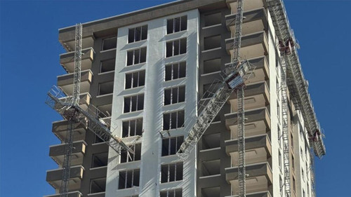 Ege Mahallesi'nde sabah saatlerinde yapımı süren 15 katlı inşaatın 12'nci katındaki yük asansörü, henüz belirlenemeyen nedenle ikiye ayrıldı.