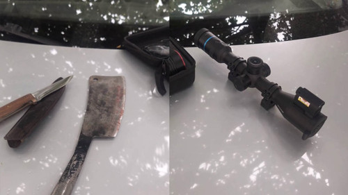 Araçta yapılan aramada, vurulmuş bir dişi kızıl geyik ile birlikte gece görüş dürbünü, yivli tüfek, bıçak, satır ve el feneri gibi ekipmanlara rastlandı.
