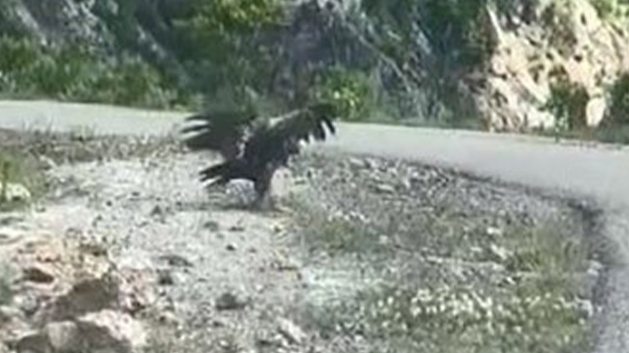 Aracını durdurarak cep telefonuyla kayda giren Genç, kartalın pençelerinde yılanla birlikte olduğunu gördü. Kartal, aracın yaklaşmasına ve çıkan sese aldırış etmeden, avını pençeleriyle sıkıca kavrayarak gökyüzüne havalanıp gözden kayboldu.