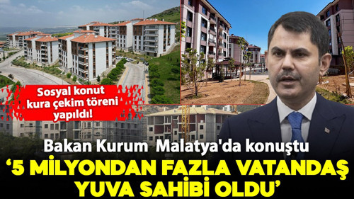 Çevre, Şehircilik ve İklim Değişikliği Bakanı Murat Kurum, Malatya'da "Ev Sahibi Türkiye Sosyal Konut Kura Çekim Töreni"nde konuştu. Kurum, TOKİ Başkanlığı eliyle bugüne kadar parkları, okulları ve bahçeleriyle birlikte 1 milyon 170 bin sosyal konut üretildiğini açıkladı. Bu projeler sayesinde 5 milyondan fazla vatandaşın yeni yuvalarına kavuştuğu bildirildi.