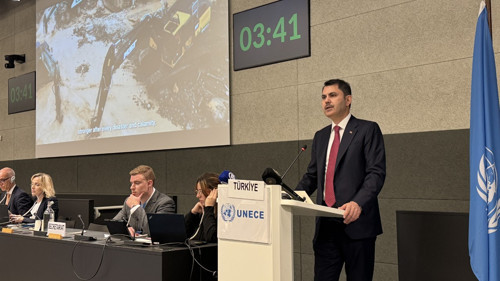 Bakan Kurum, Birleşmiş Milletler Avrupa Ekonomik Komisyonu'nun (BM AEK) Kentsel Kalkınma, Konut ve Arazi Yönetimi Komitesi'nin 86'ncı Oturumu kapsamında düzenlenen "Konut Uygunluğu ve Sürdürülebilirlik" başlıklı BM Cenevre Ofisi'nde düzenlenen toplantıda konuştu.