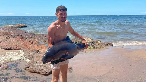 Çevredekilerden biri yunusu kucağına alıp, karaya çıkardı. Yapılan incelemede yunusun kuyruk kısmında küçük bir yara olduğu belirlendi ve yeniden denize bırakıldı. O anlar cep telefonuyla görüntülendi.