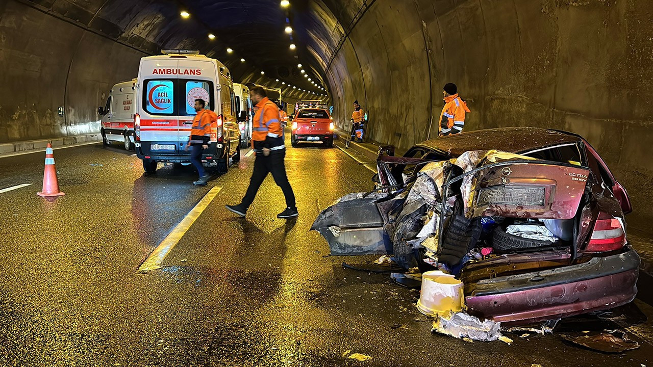 Bolu Dağı Tüneli'nde feci kaza! Tırla çarpışan otomobil hurdaya döndü: 5 yaralı