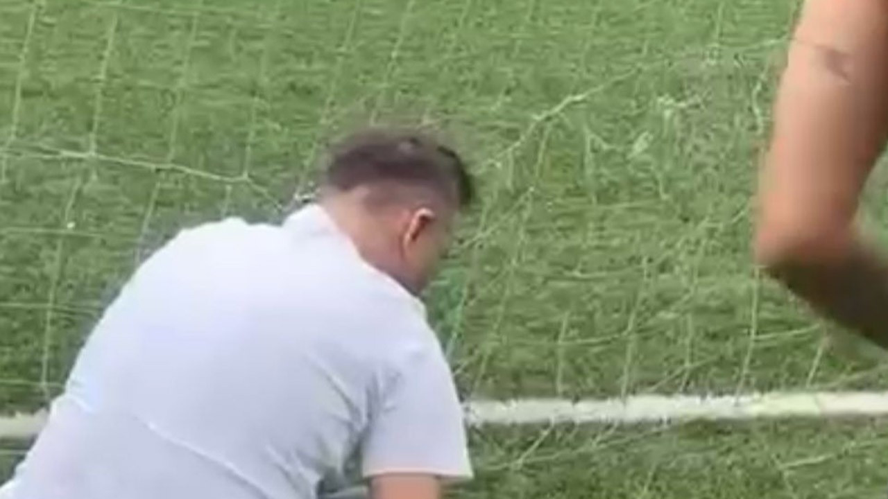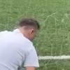 Bursa’da bir halı sahaya giren kedi, kale filelerine takıldı. Boğazına ip dolanan kediyi fark eden vatandaşlar hemen yardıma koştu.
