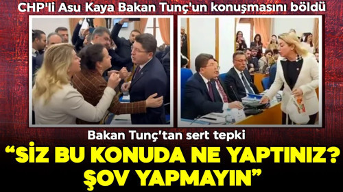 Adalet Bakanlığı’nın 2026 bütçe görüşmelerinde CHP’li Asu Kaya’nın Bakan Tunç’un sunumunu kesmesi tartışmaya yol açtı. CHP’li Kaya’nın tepkisini ısrarla devam ettirmesi üzerine konuşmasına ara veren Bakan Tunç, "Kadına şiddet kırmızı çizgimiz.Siz kadına şiddetle ilgili ne yaptınız? Onu söyleyin. Şov yapmayın, şov yapıyorsunuz. Kadınlar üzerinden siyaset yaptırmayız." ifadelerini kullandı.