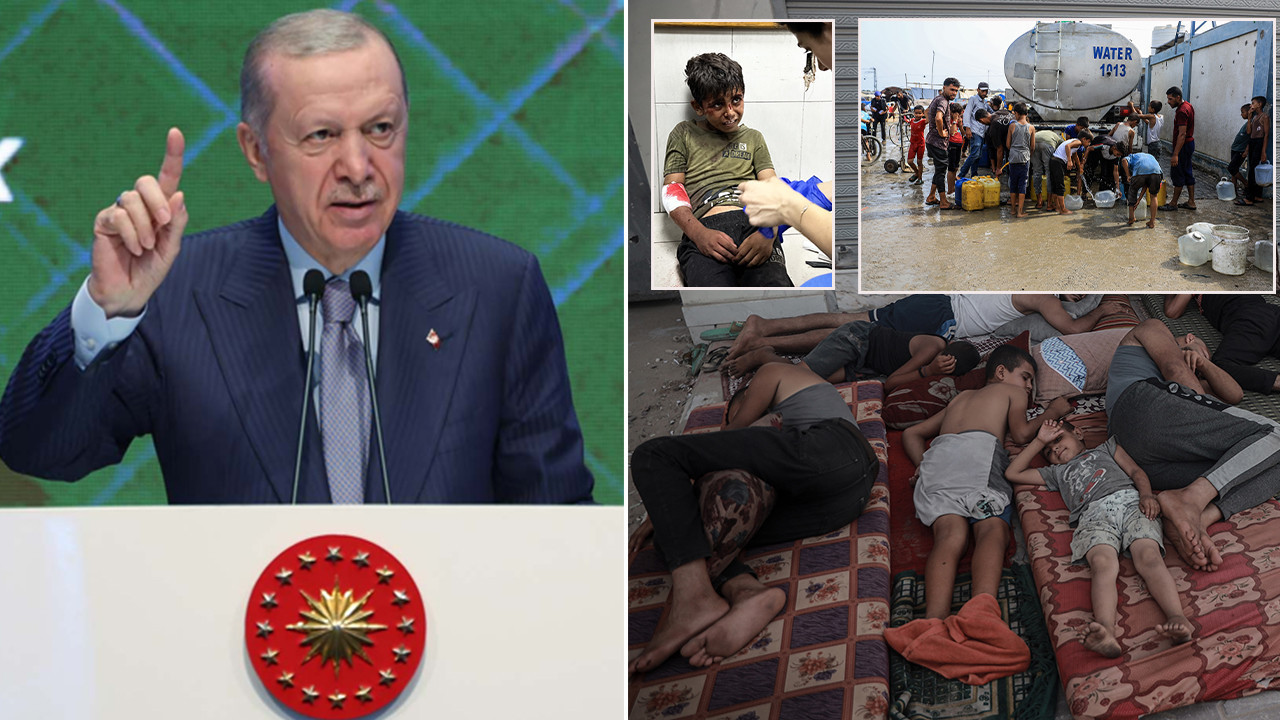 İsrail'in aylardır sürdürdüğü bombardımanların, kadınları, çocukları ve yaşlıları hedef alarak şehirleri yaşanmaz hale getirdiğini belirten Erdoğan, evler, hastaneler, okullar ve ibadethanelerin yıkıldığını, gıda, su, sağlık ve elektrik gibi temel hizmetlerin çöktüğünü kaydetti.
