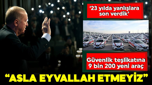 Hem görev araçlarımızın niteliğini hem de vatandaşlarımıza sunulan hizmetlerin etkinliğini artırıyoruz. Geçen sene yine burada yaptığımız törende jandarma ve emniyet teşkilatlarımıza 7204 yeni aracı kazandırmıştık. Bugün de 9200 aracı da resmen sizlerin hizmetine veriyoruz.Bu araçlardan 7080 tanesi emniyetimiz, 2070 tanesi jandarmamız, 50 tanesi ise sahil güvenliğimiz tarafından kullanılacak.