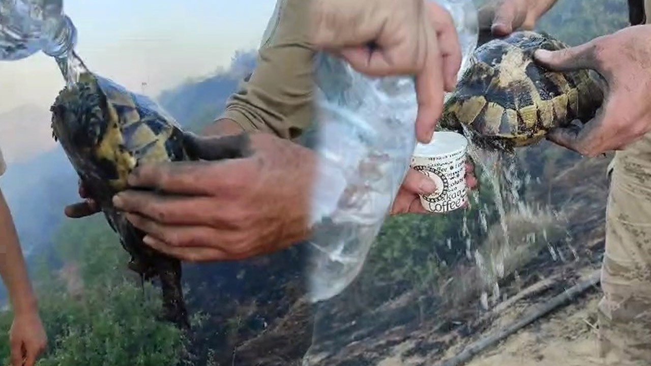 Dün çıkan orman yangını, itfaiye, orman işletme ve jandarma ekiplerinin müdahalesiyle söndürüldü. Yangından etkilenen bir kaplumbağa, ekipler tarafından güvenli alana taşınıp üzerine su döküldükten sonra yeniden doğal yaşam alanına bırakıldı.