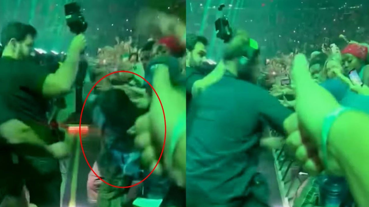 Sosyal medyada paylaşılan görüntülerde, 23 yaşındaki Eilish'in 'Guess' şarkısını seslendirdikten sonra sahne önündeki hayranlarıyla el sıkıştığı sırada bir kişinin onu bariyere doğru şiddetle çektiği görüldü.