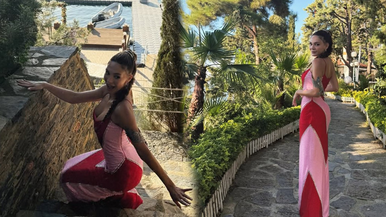 Güzel oyuncu, bu kez yakın arkadaşının düğününde poz verdi. 31 yaşındaki Ebru Şahin, kırmızı ve pembe tonlarında taşlı uzun bir elbise tercih etti.
