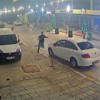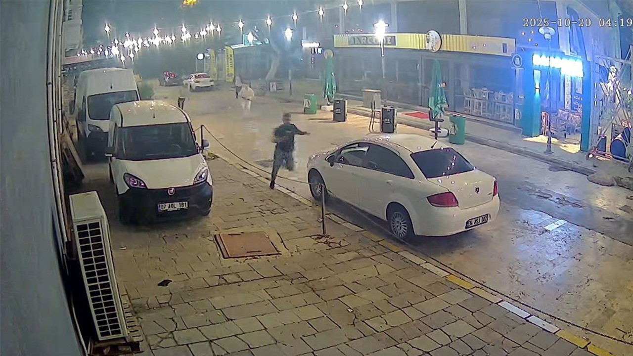 Olay anı, çevredeki bir iş yerinin güvenlik kamerasına da yansıdı.