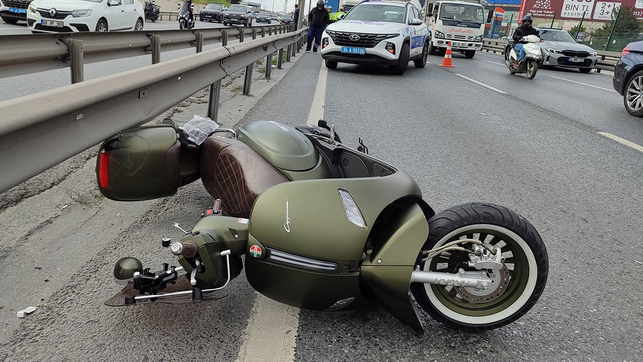 İstanbul Sefaköy’de cadde üzerinde seyir halinde olan motosiklet sürücüsü, yoldan ilerleyen kağıt toplayıcısının aracına çarptı. Kaza anı kask kamerasına yansıdı.