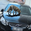 Aracın camından atılan yiyeceklerle beslenen hayanın görüntüleri cep telefonu kamerasına yansıdı.