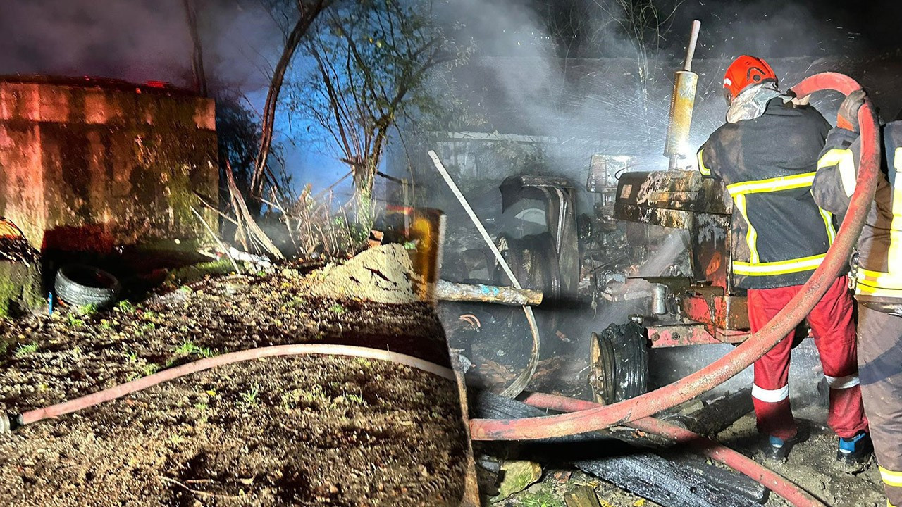 Bartın'da İlyas E’ye ait bir evin garajına yıldırım düştü. Düşen yıldırımla birlikte garajda bulunan traktör ve kamyonet yanmaya başladı.