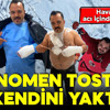 Sivas'ta yaşayan ve çektiği sosyal medya videoları ile ün salan tostçu Raşit Yıldırım, kentte etkili olan soğuk havayı takipçilerine göstermek istedi. İş yerinin önünde sıcak su şovu yapmak isteyen Raşit Yıldırım, suyu havaya dökerek donmasını görüntülemek istedi.