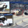Görüntülerde, hızla gelen otomobilin bariyerlere çarptıktan sonra alev aldığı görülüyor.