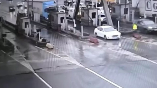 Kayıtlarda, gişelerden geçtiği sırada yavaşlayan tıra arkadan hızla gelen hafif ticari aracın çarptığı görülüyor.