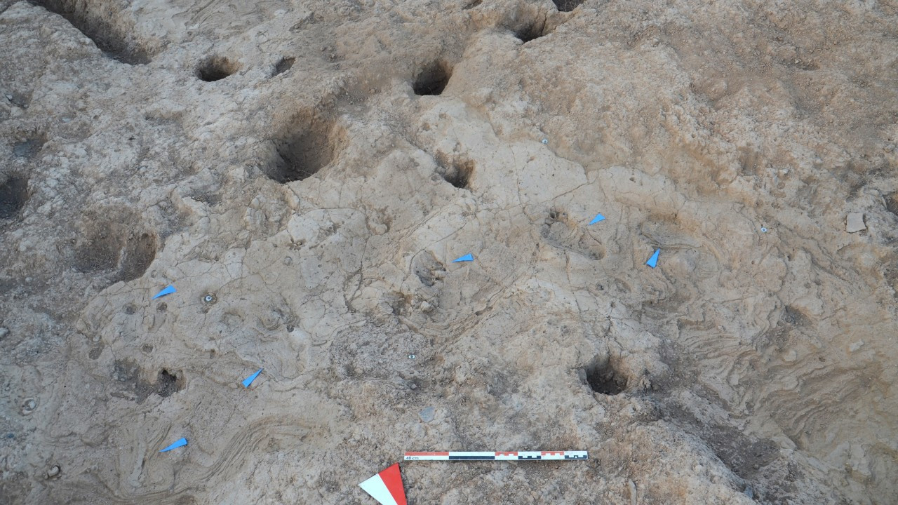 Tarih öncesi dönemleri özelliklede M.Ö. 5 ila 6 bin yıl öncesini araştırmaktayız. Ayak izleri bu yılki kazılarımızda gün yüzüne çıktı. Bu ayak izlerinden ilk önce birini bulduk ve aynı dolgu içerisinde 5 farklı ayak izi olduğunu tespit ettik. Ayak izleri, çamur ve su birikintilerine maruz kalmış toprak dokusu içinde keşfedildi.