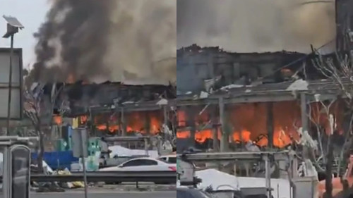 Saldırının ardından tesiste büyük çaplı bir yangın çıkarken, gökyüzünü kaplayan dumanlar şehrin pek çok noktasından izlendi.