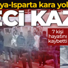 Antalya- Isparta karayolunda meydana gelen trafik kazasında ilk belirlemelere göre 7 kişi hayatını kaybetti, 7 kişi yaralandı.