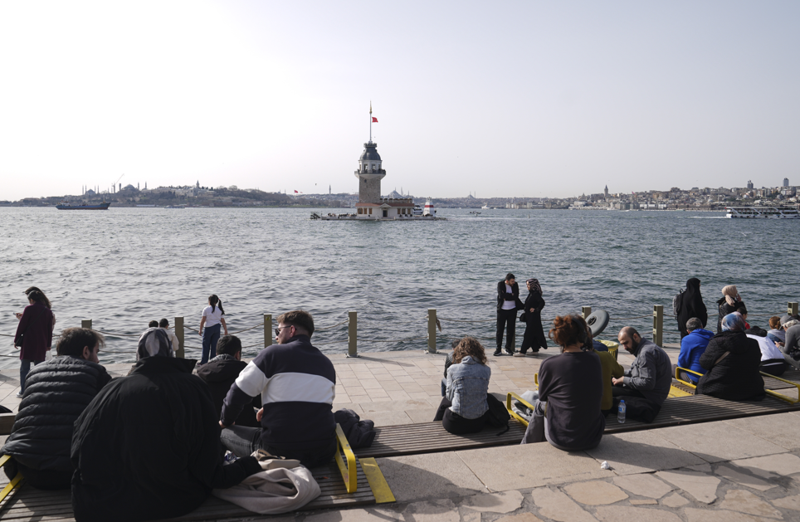 Avrupa Yakası'nda, kentin gözde tarihi noktalarından Karaköy sahili, 23 dereceye kadar çıkan sıcaklıkta güneşin tadını çıkarmak isteyenlerce tercih edildi.