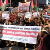 Kalabalık, yürüyüş esnasında, "Her Yer Filistin Her Yer Direniş", "Siyonist Abluka Dağıtılacak", "Gazze'de Çocuklar Açılıktan Ölüyor" sloganları atarak ilerledi.