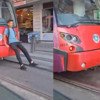 Görüntülerde, çocuğun hiçbir güvenlik önlemi olmadan tramvayın arkasında yolculuk ettiği anlar net bir şekilde görüldü. Kısa süreli panik yaşatan olayda neyse ki herhangi bir kaza yaşanmadı.