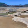 Sadece küçük bir noktada suyun kalması nedeniyle havzada adacıkların oluştuğu, eski yapıların ortaya çıktığı, zeminin çatladığı görüldü.