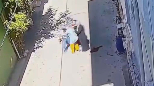 O anlar bir apartmanın güvenlik kamerasına yansıdı.