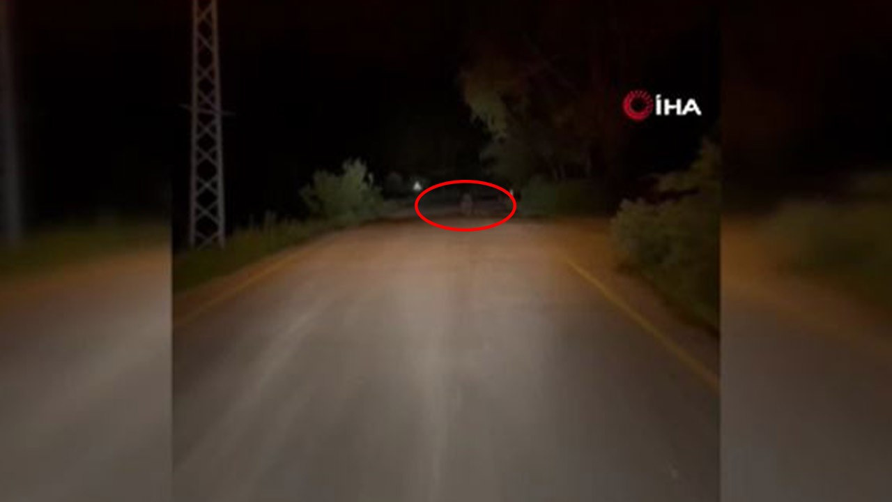 Karabük’te gece karanlığında 1 tanesi köy yolunda bir aracın önünde belirdi. Hemen fotoğrafını çekti