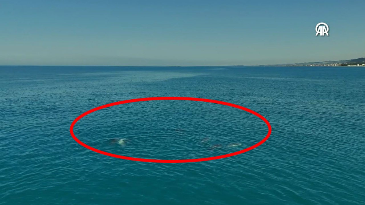 Bir süre gözlenen yunuslar, daha sonra gözden kayboldu.Yunuslar, dronla görüntülendi.