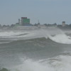 Dalgaları izlemek için sahil bandına ve iskeleye gelen vatandaşlar, bu anları cep telefonu kameraları ile kaydetti.