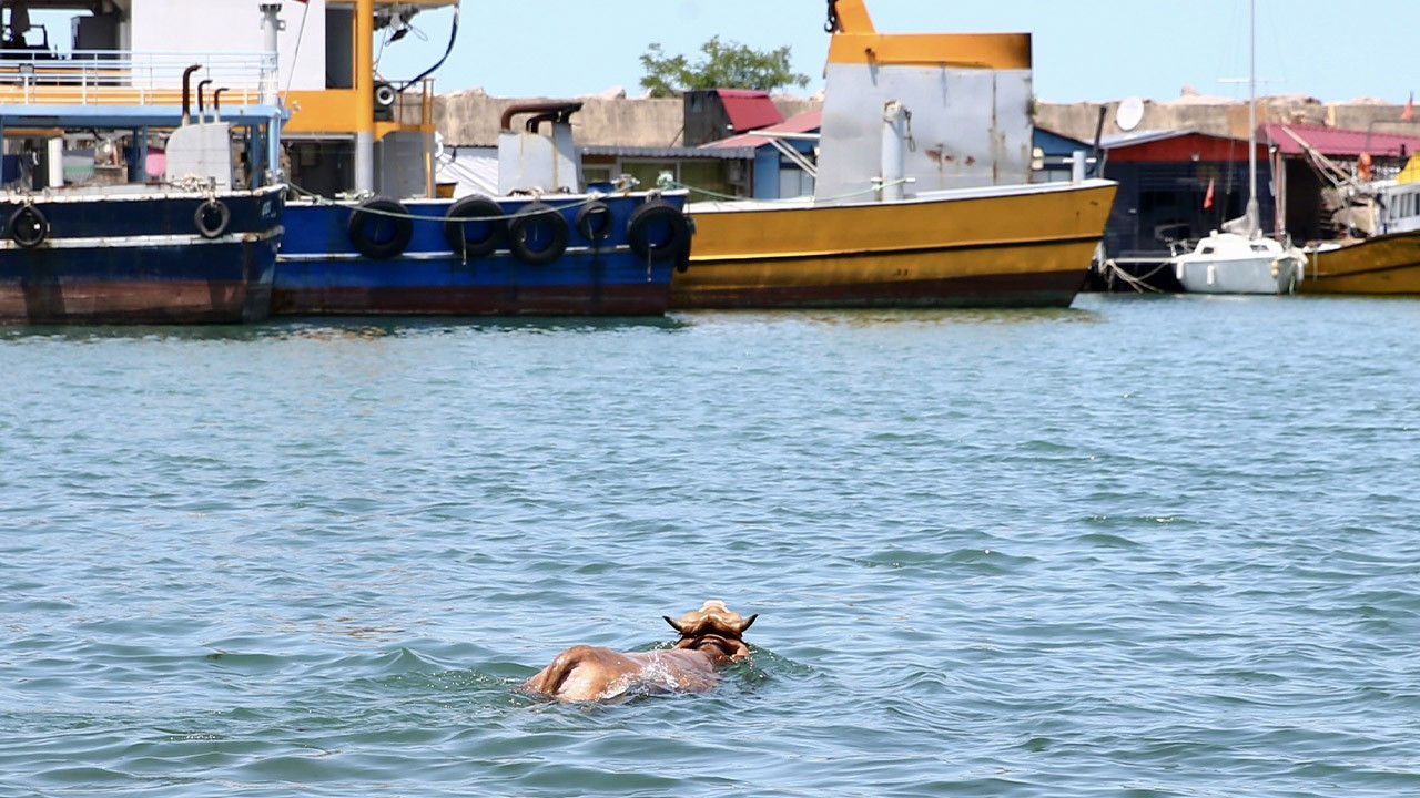 Yaklaşık 20 dakika suda kalan kurbanlık, karaya çıkarak barınaktaki bir balıkçı kulübesine girdi. Kulübenin kapıları kapatılarak içeride tutulan kurbanlık, ihbar üzerine balıkçı barınağına yönlendirilen belediye ekiplerince uyuşturucu iğneyle sakinleştirildi. Sahibi tarafından kamyonetin kasasına bindirilen kurbanlık, barınaktan götürüldü.