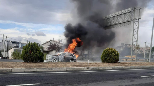 Tekirdağ-İstanbul yolunda seyreden lüks otomobil bilinmeyen bir nedenle alev aldı. Yangın sonrası otomobil hurdaya döndü.